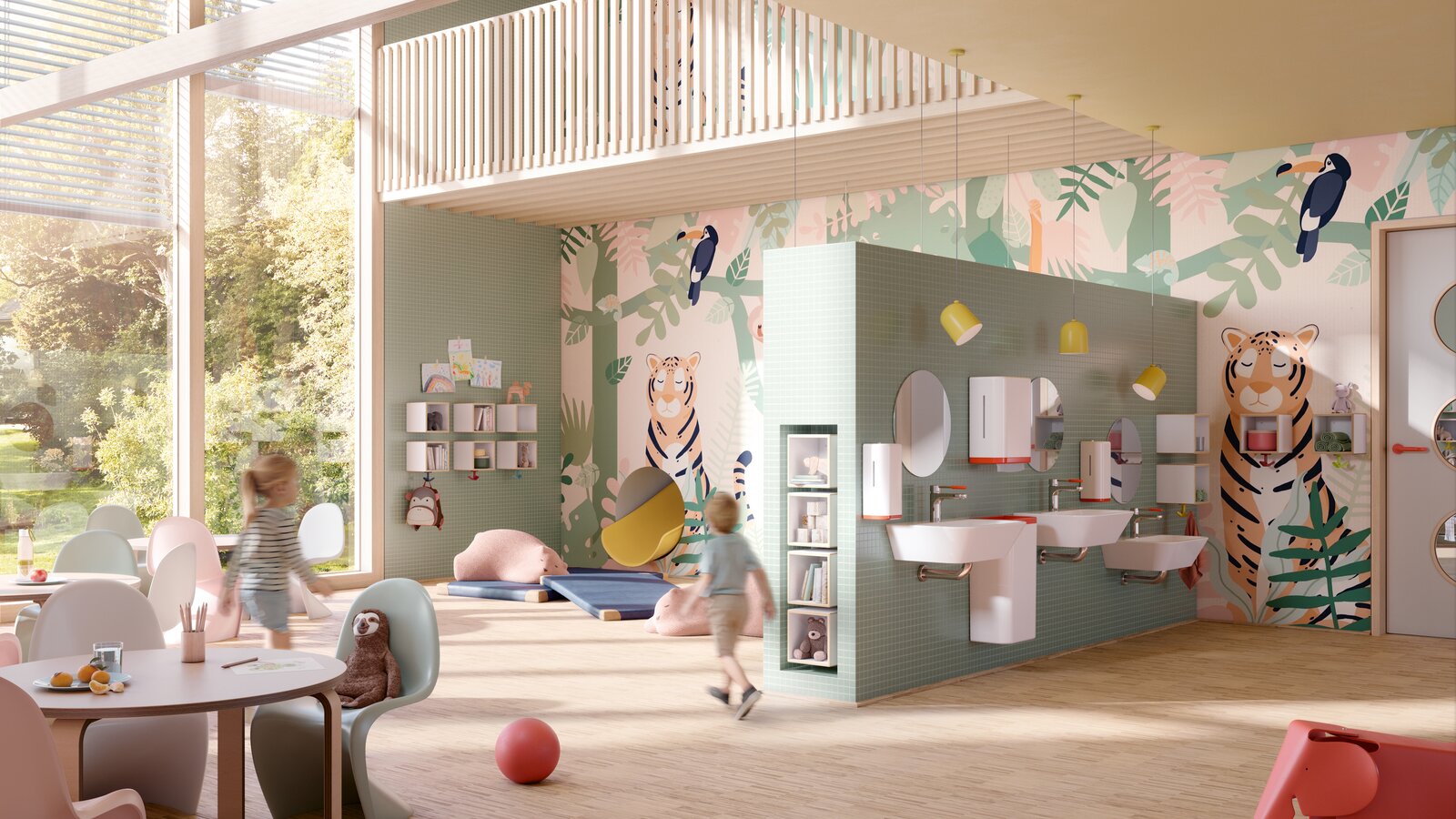 Ausstattungslösungen für Kindergärten und Schulen haben eine Vielzahl an Anforderungen zu erfüllen. Produkte müssen dort dauerhaft außerordentlichen Belastungen standhalten und deshalb robust sowie hygienisch gestaltet sein. Gerade in Kitas ist der Nachholbedarf in puncto Hygiene groß. Insbesondere in Waschbereichen mit hohen hygienischen Anforderungen fehlt oft notwendiges Inventar für den Infektionsschutz.